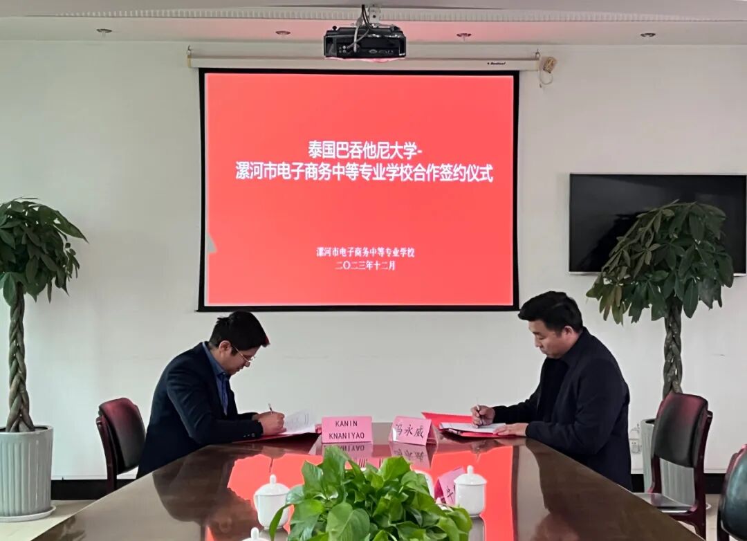 交流座谈会上,中泰两校就各自学校的实际情况、办学理念、管理模式等展开深入的交流,针对未来学校教学教研、学生发展等合作细节进行深度研讨并达成一致,成功签署《漯河市电子商务中等专业学校与泰国巴吞他尼大学合作备忘录》。