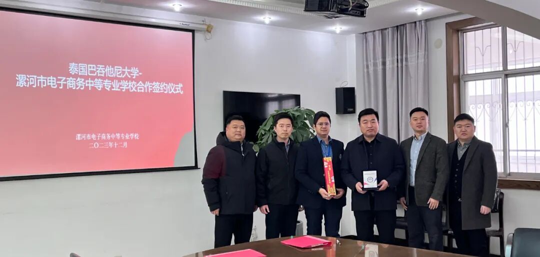 2023年12月18日,泰国巴吞他尼大学副校长Knaniyao Kanin,国际学院中方院长唐小冬等一行到漯河市电子商务中等专业学校访问交流。漯河市电子商务中等专业学校执行校长冯永威、校长助理李昂、校领导鄢德龙及相关部门负责同志参加。
